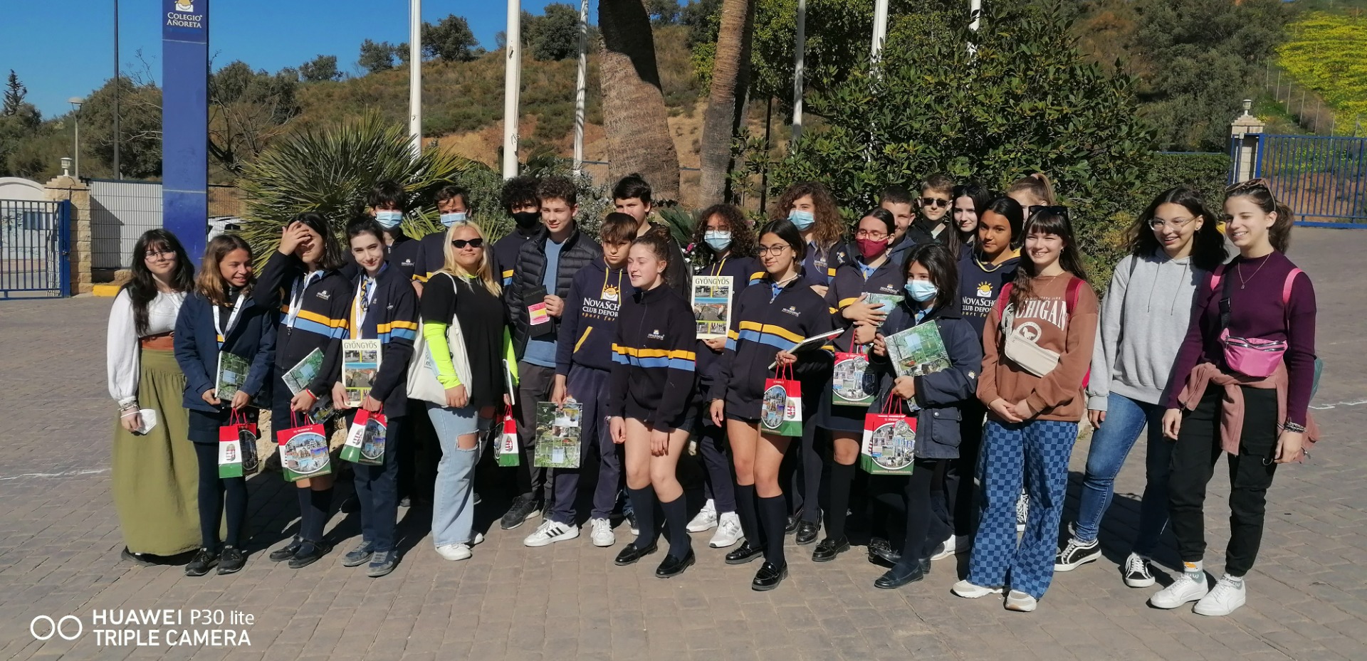 Még kiutazásunk előtt email címeket cseréltünk a spanyol gyerekekkel, így a találkozás olyan érzés volt, mintha távoli ismerősök iskoláját látogattuk volna meg. Az udvarra belépve izgatottan fürkésztük levelezőtársainkat, majd egy rövid köszöntés után együtt feltérképeztük a modern intézményt. Yolanda, a Nova School nyelvtanára, büszkén vezetett minket végig kis csapatával a bölcsődét, óvodát, általános- és középiskolát alkotó színes épületegyütteseken.