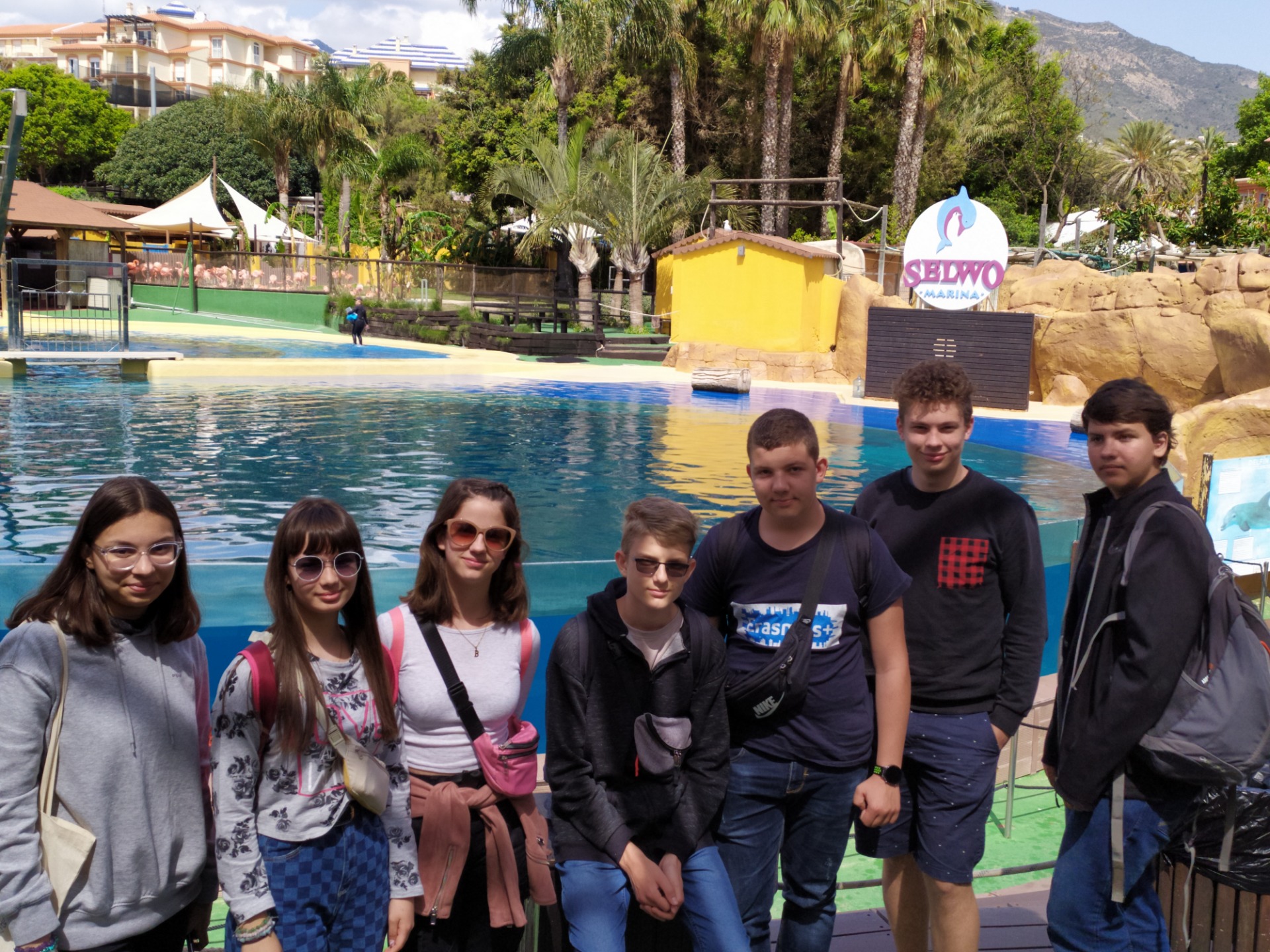 A szokatlanul korai (7:30-as) reggelit követően Benalmádenába indultunk. Könnyedén vitt a lábunk a dombtetőre épült iskola lejtőjén, 2 hét után csukott szemmel is tudtuk a járást. A fél órás utazáson már érződött, hogy kezdünk lassan telítődni az élményekkel és egyre laposabbakat pislogtunk, ahogy a vonat ringatott minket a kisváros felé. Ott aztán ketté váltunk és a csoport egyik fele az állatkert, másik fele a park felé vette az irányt. Amint a távolban látni véltük úti célunkat, erőnk újra visszatért és egyre szaporábban szedtük a lábunkat. Bármi is volt a végállomás: egy fergeteges delfin show, vagy meglepetés diák-party a yacht kikötő mellett, a töltekezés hatékonynak bizonyult!